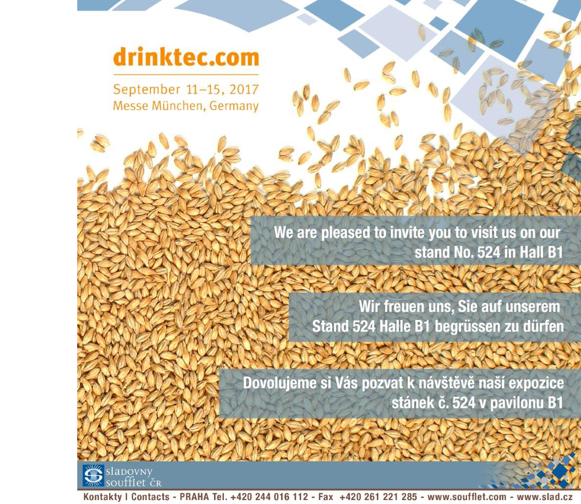 Dovolujeme si Vás pozvat k návštěvě naší expozice na veletrhu Drinktec, který se koná 11.-15. září 2017 v Mnichově.